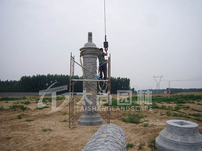十二生肖雕塑采用云彩雕刻的柱子形式展現十二生肖的神話故事,整體表現的栩栩如生。